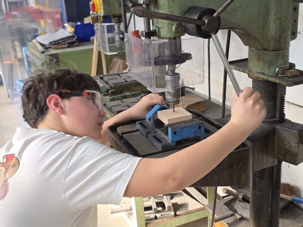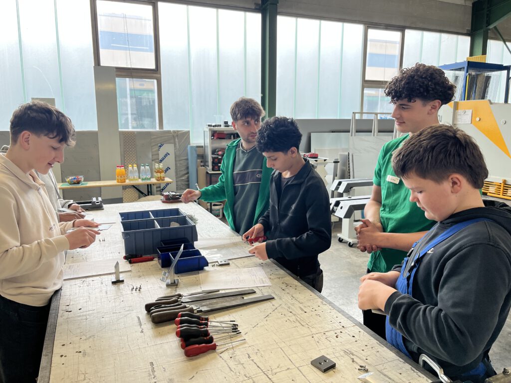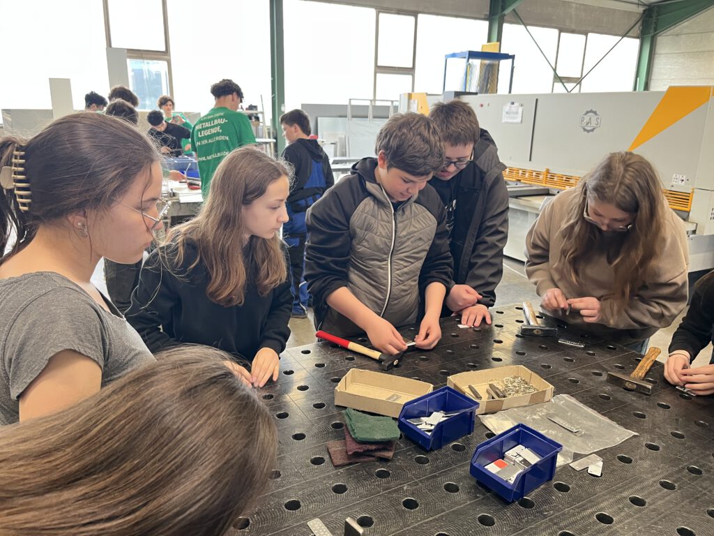 Ganz besonders interessant waren die praktischen Angebote, die sich die Unternehmen im Vorfeld überlegten. So konnten die Schülerinnen und Schüler typische Tätigkeiten im Metallbau und der Holzbearbeitung selbst ausprobieren.