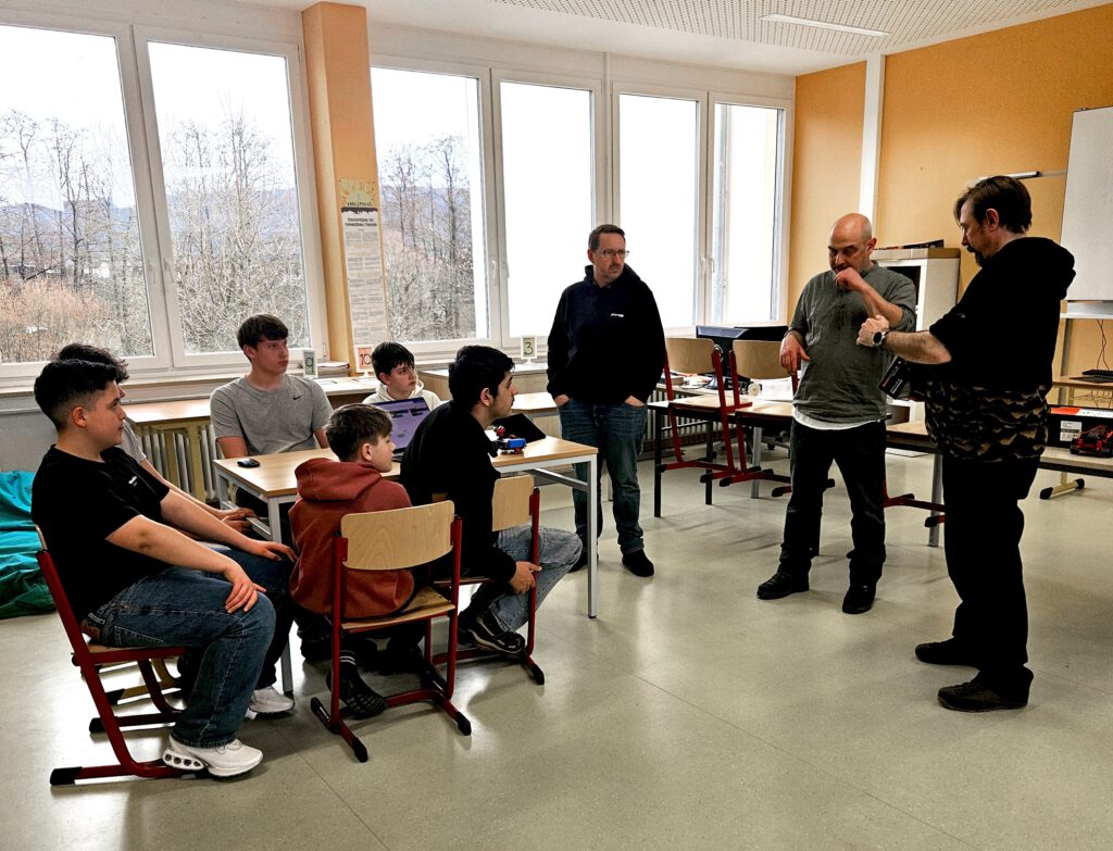 Vor einigen Wochen erhielten unsere Schüler der Robotik-AG die außergewöhnliche Gelegenheit, hinter die Kulissen der Firma FMB zu blicken und modernste Industrierobotik in Aktion zu erleben. Was als einseitige Exkursion begann, entwickelte sich nun zu einem wertvollen Dialog auf Augenhöhe. Beim heutigen Gegenbesuch präsentierten unsere technikbegeisterten Jugendlichen stolz ihre eigenen „Werke“ – Roboter, die sie in unzähligen Stunden eigenständig programmiert und konstruiert haben.